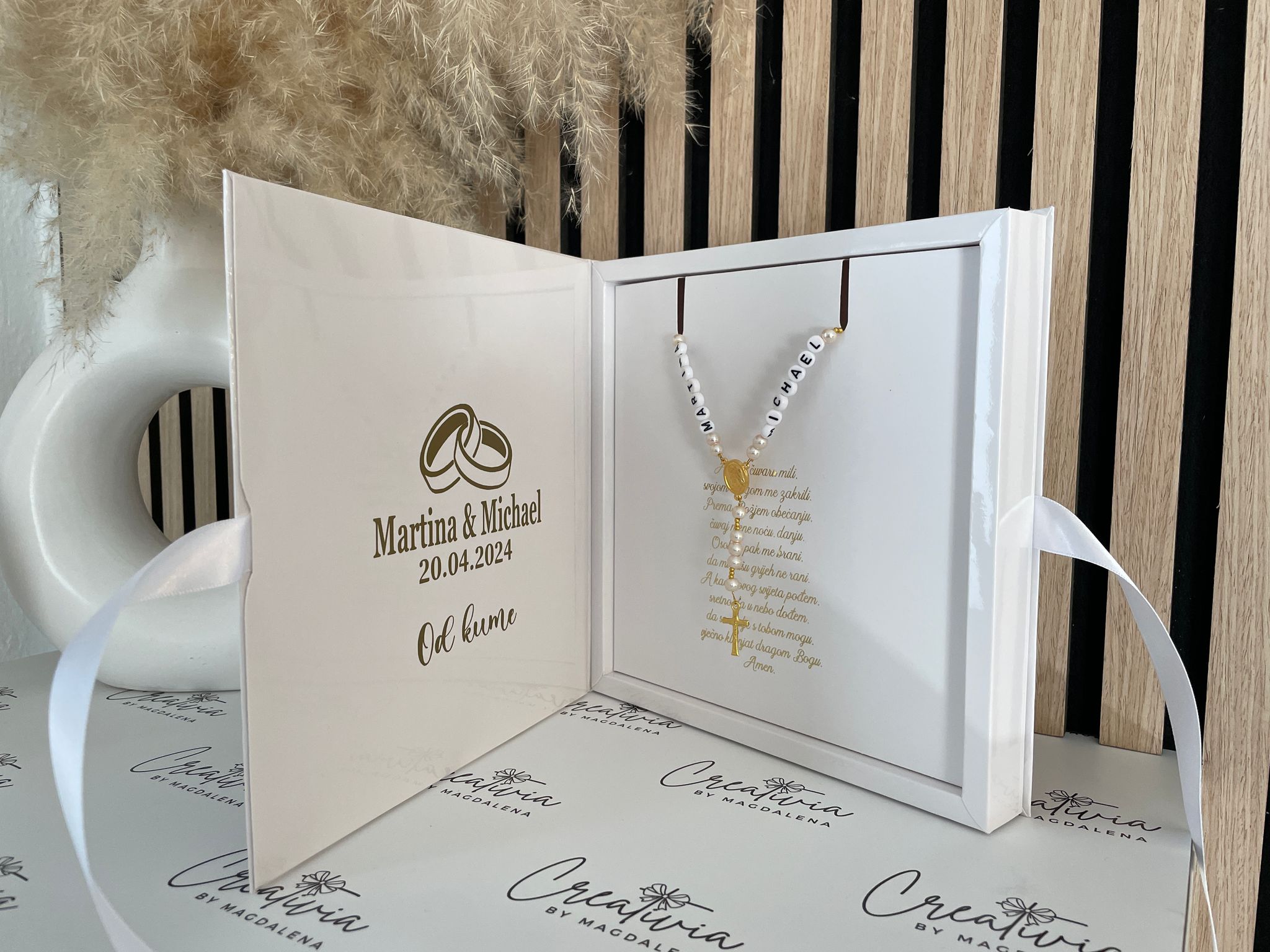 Elegante Aufbewahrung mit persönlicher Gravur und symbolischer Krunica.
