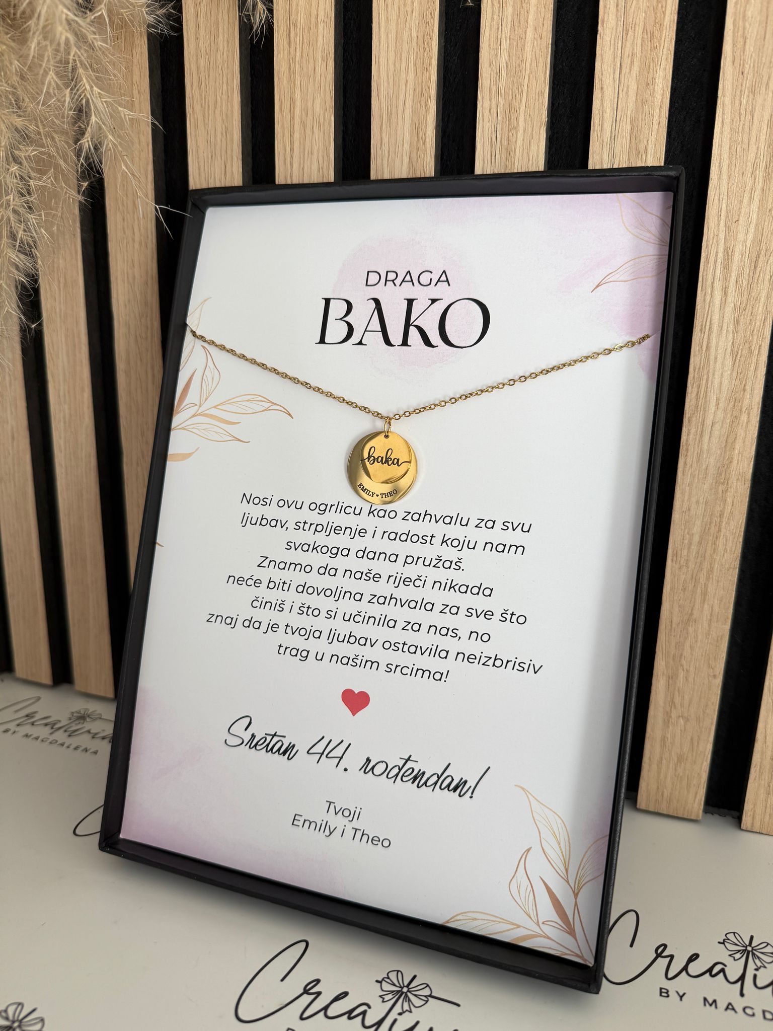 Dieser personalisierte Rahmen mit einer Kette und einer Widmung ist ein besonders liebevolles Geschenk für eine geliebte Person. Es eignet sich hervorragend für Jahrestage, Geburtstagsgeschenke oder andere besondere Anlässe.