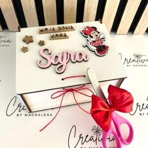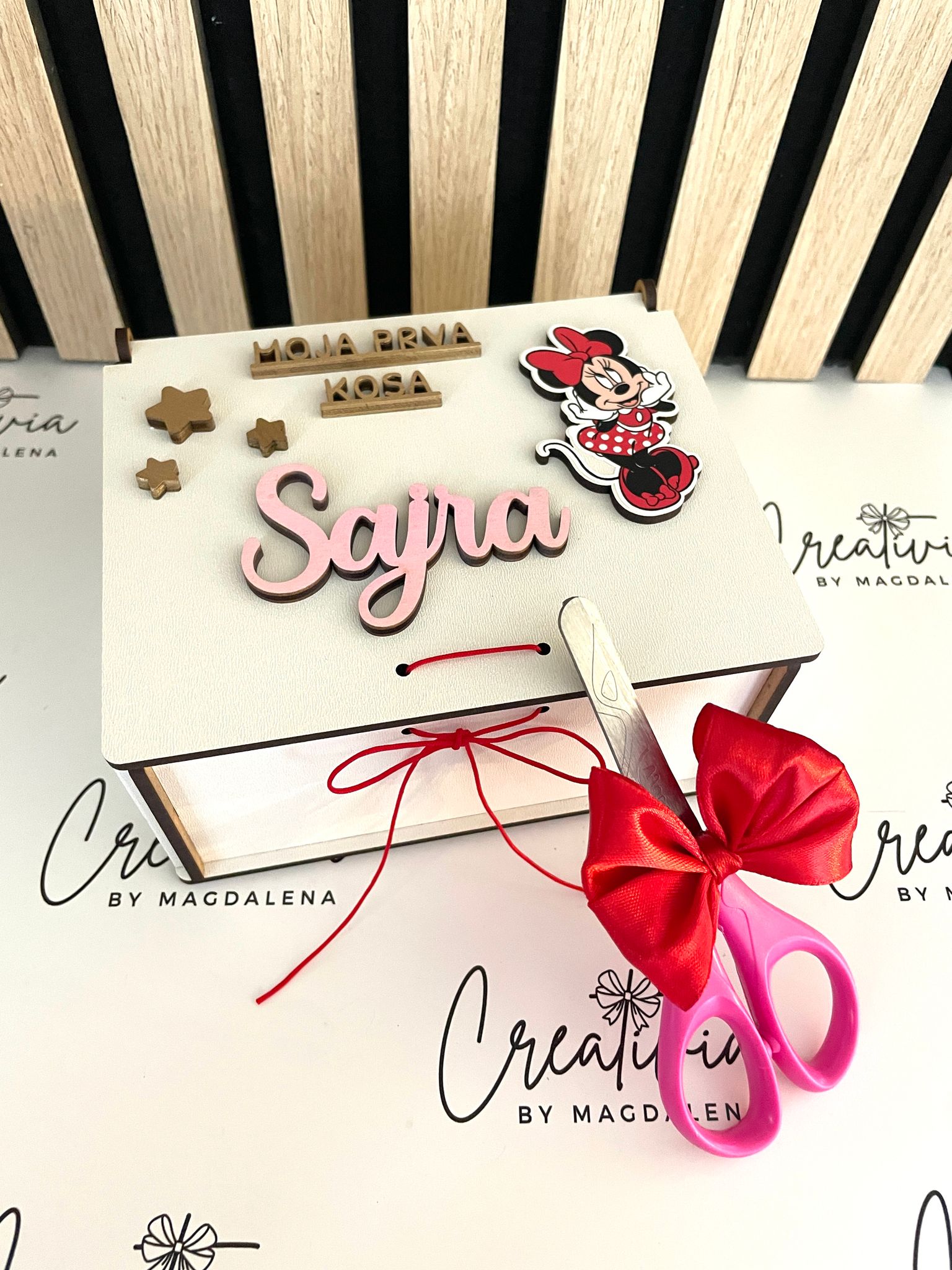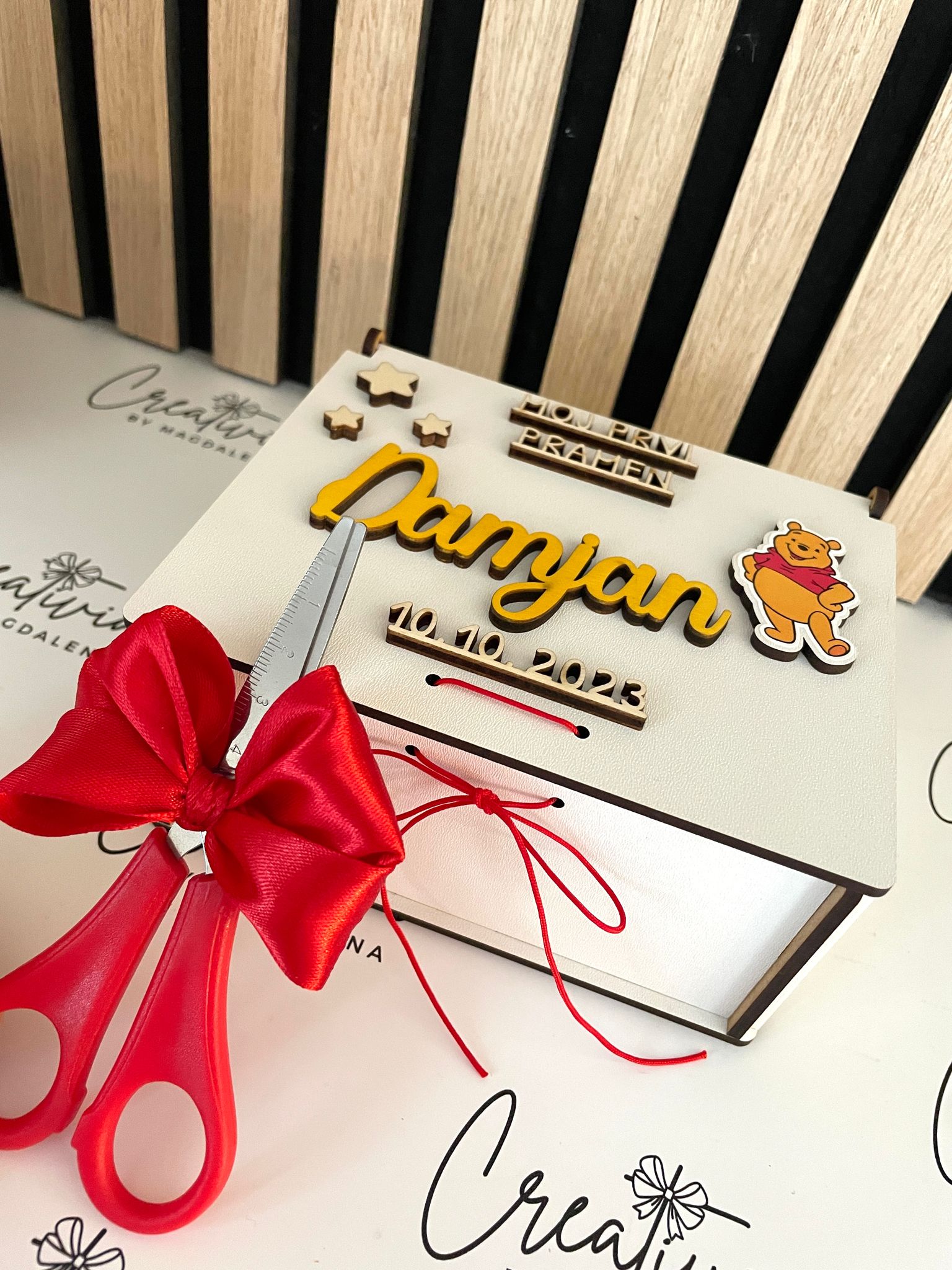 Diese personalisierte Erinnerungskiste enthält eine Schere mit dekorativem Band und wird mit den Geburtsdaten des Kindes graviert – ein einzigartiges Andenken an den ersten Haarschnitt. Ideal zum Aufbewahren des ersten Haarschnitts und anderer wichtiger Erinnerungen wie Geburtsdatum, -zeit, Gewicht und Länge des Babys.